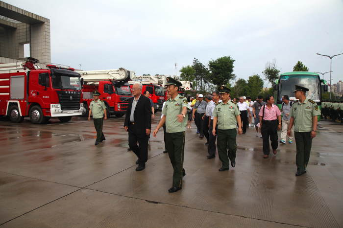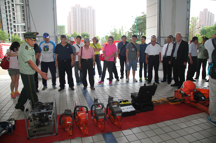 座談會結(jié)束后,張明總工程師、賈西海會長等陪同臺灣代表團參訪了西安支隊特勤二中隊。臺灣客人認真觀看了特勤二中隊各類車輛裝備器材,并不時拍照、攝像記錄,與特勤官兵就人員搜救、通信保障、火場排煙等裝備性能及實戰(zhàn)應(yīng)用進行了探討、交流。