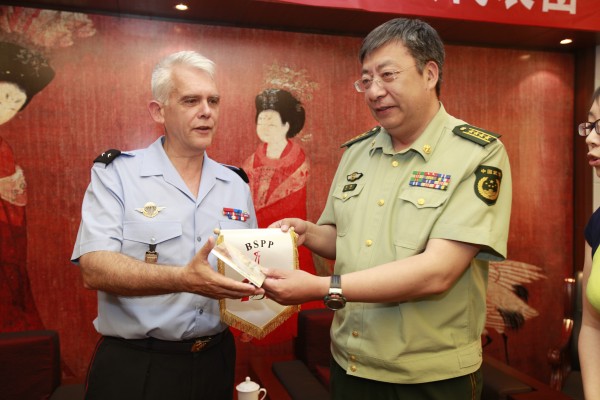 彭瑟琳將軍對周詳總隊長的熱情迎接表示感謝,并介紹了法國巴黎市的基本情況和消防總隊的歷史沿革、消防隊站布局和接處警等情況。他表示,陜西省消防總隊承擔著復(fù)雜繁重的消防安全保衛(wèi)任務(wù),尤其是在特勤應(yīng)急救援、裝備建設(shè)等方面,有著自己的優(yōu)勢和特點,很值得巴黎消防總隊認真學習。他希望雙方的友誼像陜西悠久的歷史文化一樣源遠流長。雙方隨后互贈了禮物,并合影留念。
