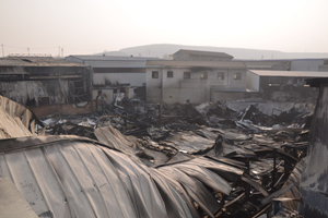(3)湖北十堰某汽車配件庫房周某反映,當時他正在辦公室,隔壁汽車配件庫房徐某進來喊他說他的庫房著火了,他趕緊拿鑰匙打開庫房門,發(fā)現(xiàn)庫房東南面放臥鋪墊子的地方著火了,當時火不是很大,還沒有多少煙,還能看清庫房內(nèi)的情況,但是很快煙就起來了。