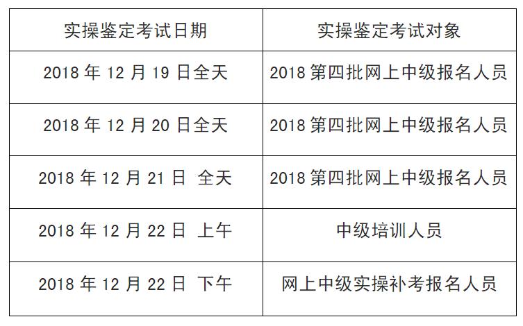 現(xiàn)將初、中、高級(jí)實(shí)操鑒定考試和實(shí)操補(bǔ)考時(shí)間安排公告如下: