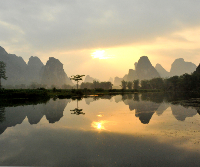 桂林的山,平地拔起,千姿百態(tài);漓江的水,蜿蜒曲折,明潔如鏡;山多有洞,洞幽景奇;洞中怪石,鬼斧神工,琳瑯滿目,于是形成了“山青、水秀、洞奇、石美”的桂林“四絕”,故而自古就有“桂林山水甲天下”的美稱。