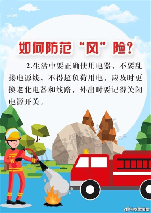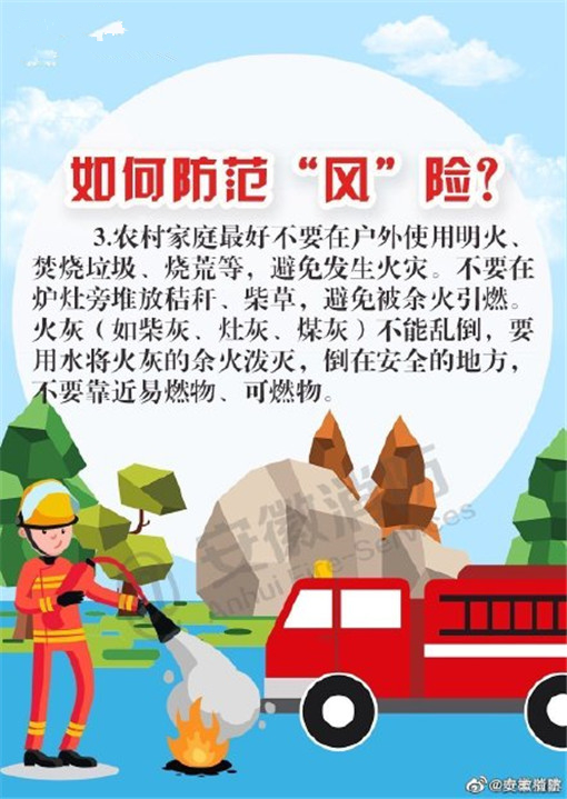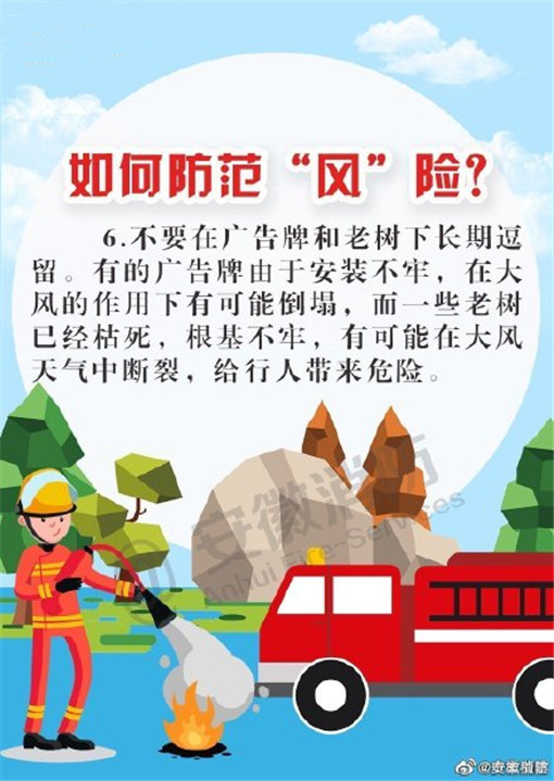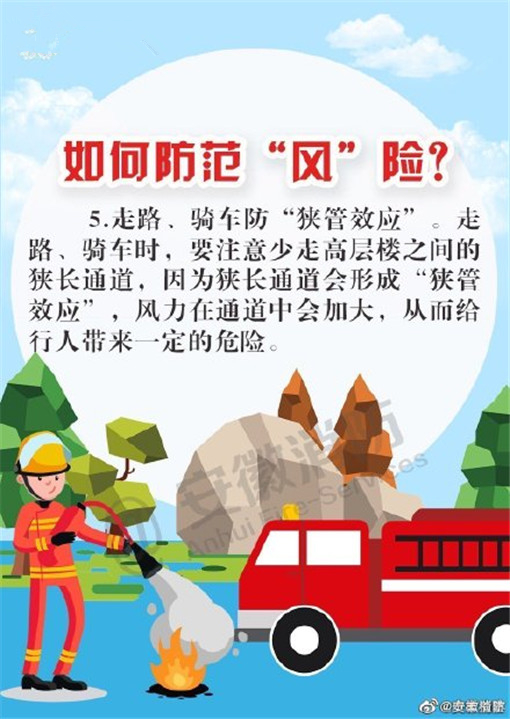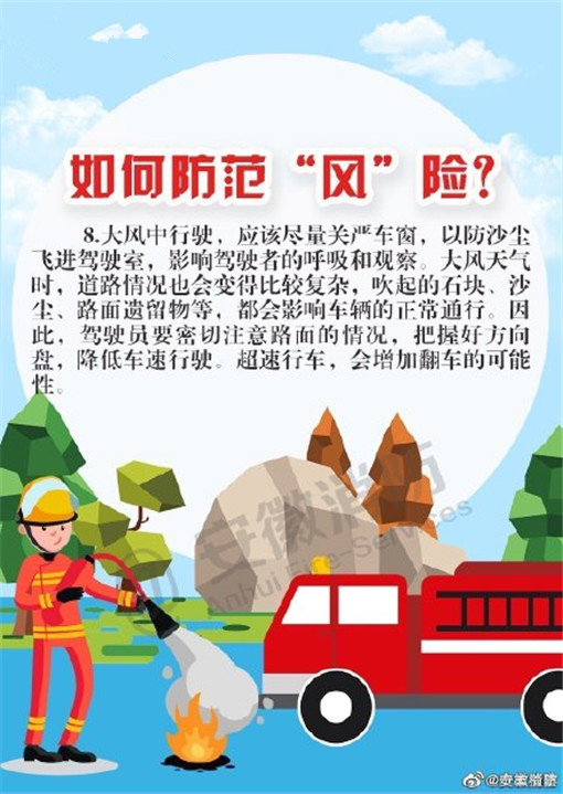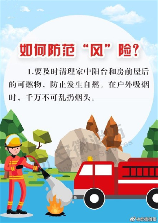大風來臨時,天氣干燥,火災發(fā)生的幾率也隨之增大,注意用火、用電、用油、用氣安全,野外游玩要避免使用火源。不僅要防火,也要注意駕駛和行走在路上的安全,謹防高空墜物。
