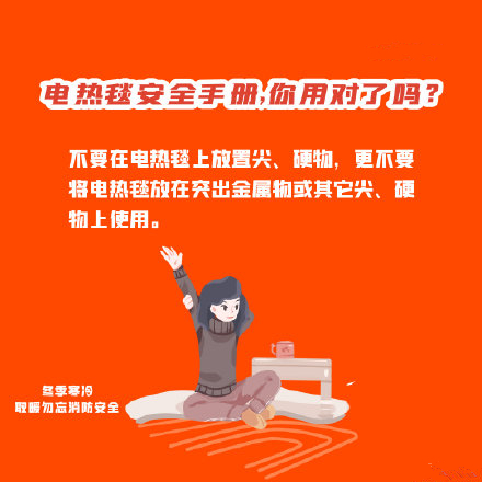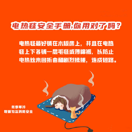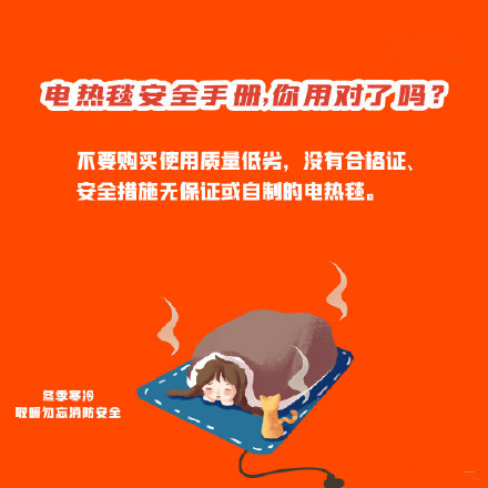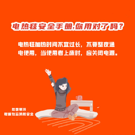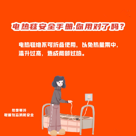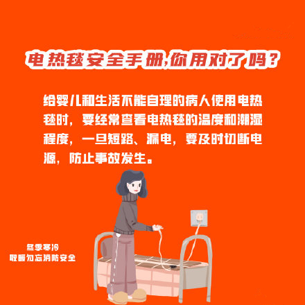 天氣逐漸越來越冷,居民趕緊用起電熱毯取暖設備,但隨之而來的是各類安全隱患。你知道如何保證安全與溫暖兼?zhèn)鋯幔翀D了解安全注意事項!