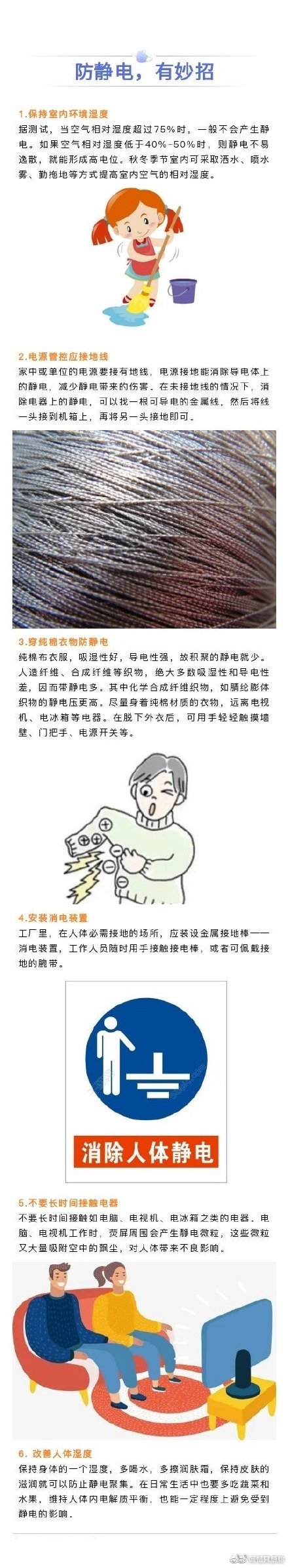 在干燥的秋冬季節(jié),在日常生活中,人們常常會碰到這種現(xiàn)象:晚上脫衣服睡覺時,黑暗中常聽到噼啪的聲響,而且伴有藍光;見面握手時,手指剛一接觸到對方,會突然感到指尖針刺般刺痛,令人大驚失色;這就是發(fā)生在人體的靜電,對人體傷害雖不大,可是時不時被電一下,卻十分惱人,防靜電小妙招來啦!