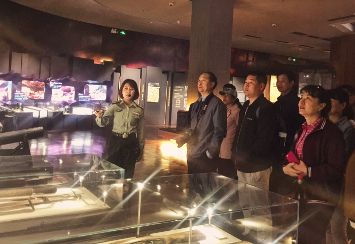 在薛家寨革命舊址,大家沿山路爬上寨子,參觀了陜甘邊革命武裝依托薛家寨建立的兵工廠、被服廠、軍械廠遺址,走在先輩們曾經用血汗開辟的道路上,深刻體會到當年條件的艱苦,對共產黨人英勇頑強的革命大無畏氣概肅然起敬。