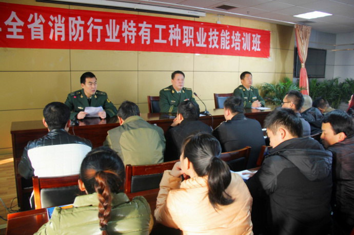 培訓部主任何生哲結合全國以及我省冬季火災多發(fā)的嚴峻形勢,分析了全省消防行業(yè)特有工種職業(yè)技能培訓工作取得的成績和經驗,并對全體培訓學員提出了明確要求:要求大家充分認識參加此次培訓的必要性和重要性,端正學習態(tài)度,加強溝通交流,相互學習借鑒,熟練掌握各類消防設施設備的操作方法,為今后的工作打下堅實的基礎;要求管理人員實行半軍事化管理,全體學員要服從管理,嚴格遵守培訓班各項管理規(guī)定,堅持請銷假制度,自覺維護課堂紀律,力爭達到初級建(構)筑物消防員的要求。最后,他還勉勵大家要珍惜機會,爭取以優(yōu)異的成績圓滿結業(yè),確保培訓達到預期目的。