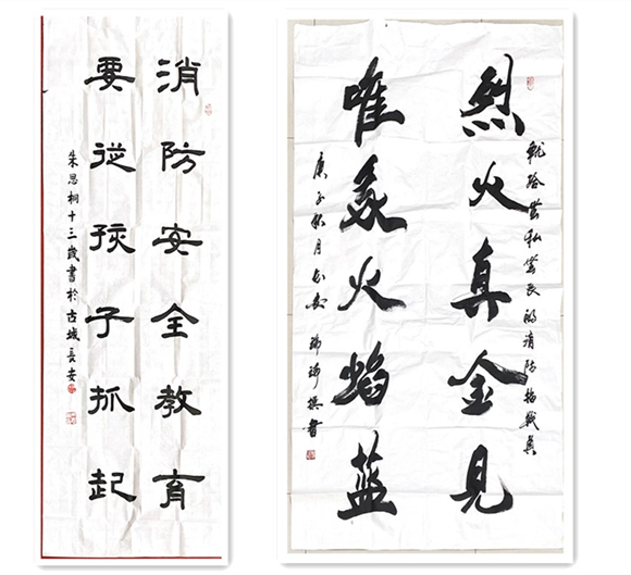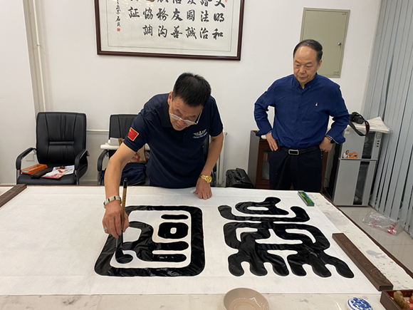 為進(jìn)一步搞好消防科普宣傳工作,弘揚(yáng)消防精神,創(chuàng)作出更多消防科普宣傳作品,讓全社會(huì)進(jìn)一步了解消防、關(guān)心消防,8月21日省書(shū)法協(xié)會(huì)副主席王剛、中國(guó)國(guó)畫(huà)研究院陜西分院院長(zhǎng)曾祥斌、西安皇都書(shū)畫(huà)藝術(shù)研究院院長(zhǎng)石溪、陜西神州書(shū)畫(huà)研究院常務(wù)副院長(zhǎng)董瑞琦和陜西秦源書(shū)畫(huà)院副院長(zhǎng)張明琦一行五人蒞臨省消防協(xié)會(huì)為“2020年全國(guó)優(yōu)秀消防科普宣傳教育作品大賽”創(chuàng)作消防科普書(shū)法作品。