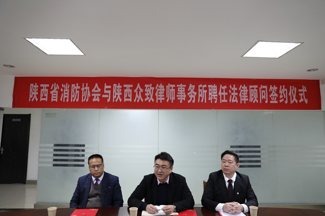 2023年3月16日上午,省消防協(xié)會(huì)在三樓會(huì)議室舉行法律顧問聘任儀式,聘請(qǐng)陜西眾致律師事務(wù)所李祎律師、汪衛(wèi)宇律師、王德寧律師擔(dān)任協(xié)會(huì)法律顧問。會(huì)長(zhǎng)賈西海、秘書長(zhǎng)卞建峰等人參加了會(huì)議。