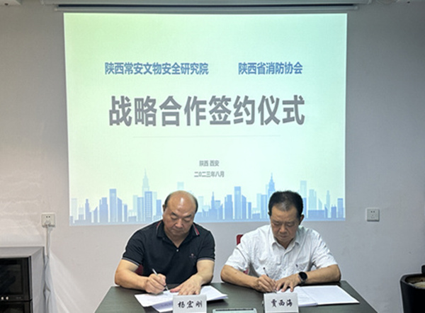 8月28日,陜西省消防協(xié)會(huì)與陜西常安文物安全研究院(以下簡(jiǎn)稱(chēng)“文安院”),就探索解決文物建筑消防安全防護(hù)等問(wèn)題,簽署了戰(zhàn)略合作協(xié)議。協(xié)會(huì)會(huì)長(zhǎng)賈西海、文安院榮譽(yù)院長(zhǎng)楊宏剛等相關(guān)人員參加了簽約儀式。