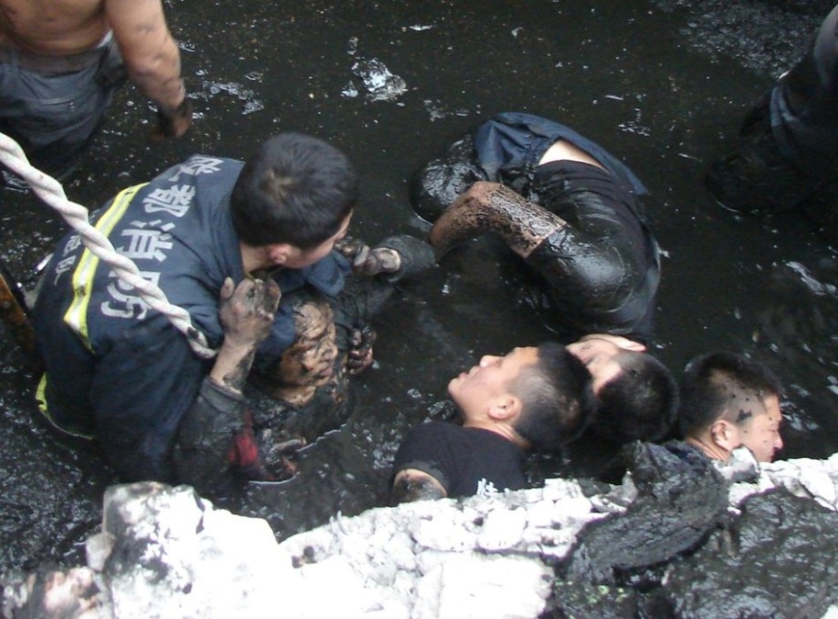 2013年3月6傍晚,成都一名正在拆除房屋的工人因腳下預(yù)制板坍塌,不慎掉進(jìn)1米多深的糞水池內(nèi)。四名消防員游攀、謝磊、李軍和曾祥跳下化糞池救人。中隊(duì)長姚磊說,四人浸泡糞水很長時(shí)間,以致回隊(duì)后壞了胃口,吃不下飯。姚磊李逢春/攝