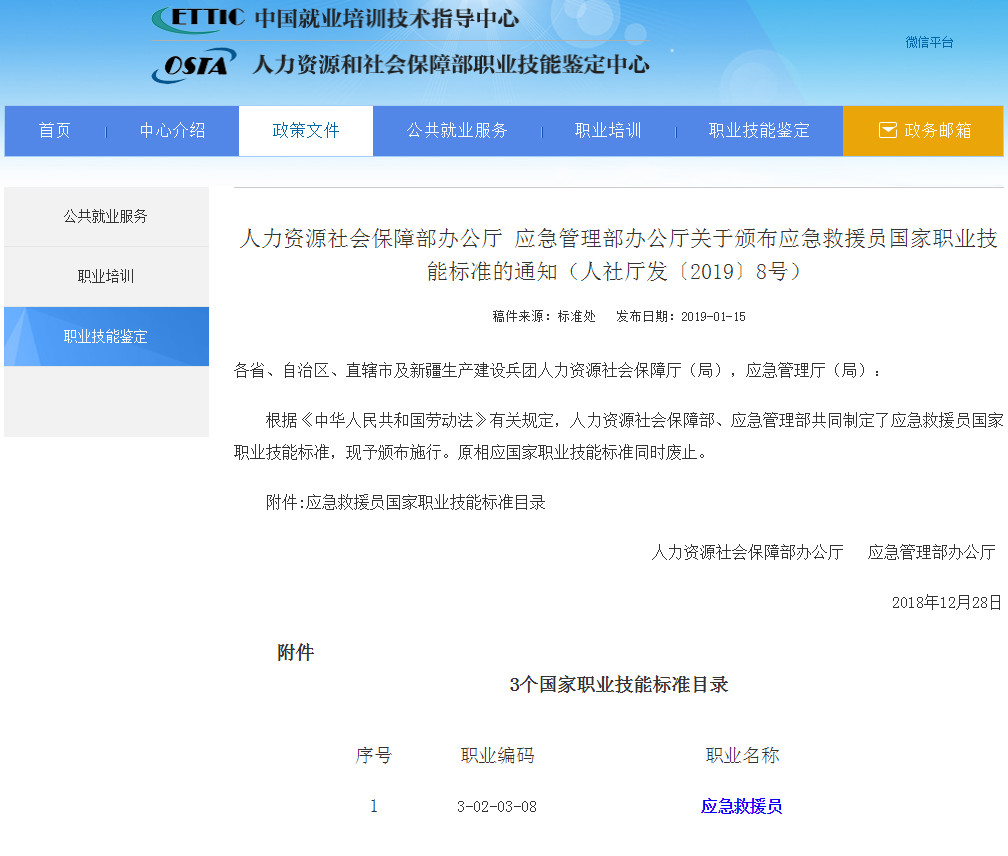 應急救援員國家職業(yè)技能標準【點擊下載】